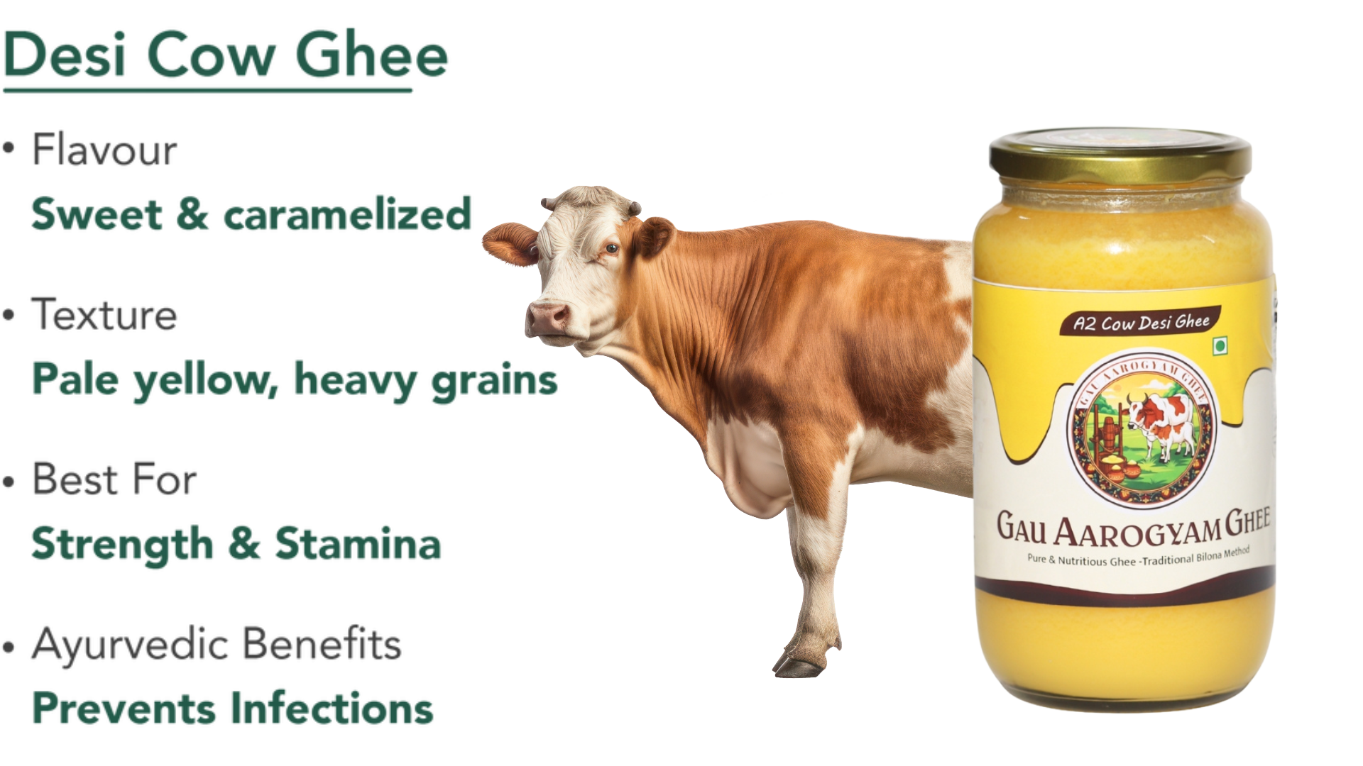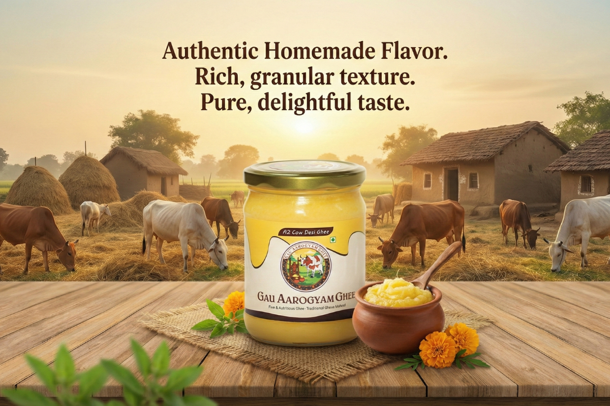 Gau Arogyam Ghee is sourced from verified desi cows, and each batch undergoes strict quality checks. Made using traditional bilona methods and minimal processing, it contains no additives, preservatives, or hidden ingredients — guaranteeing 100% pure, authentic A2 ghee.